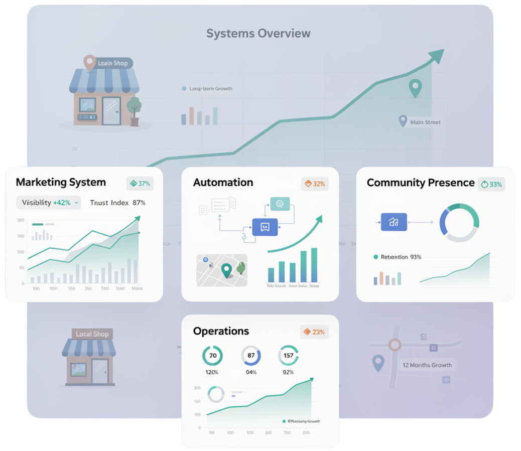 We help local businesses grow through local community-based marketing, automation, and systems that actually work.