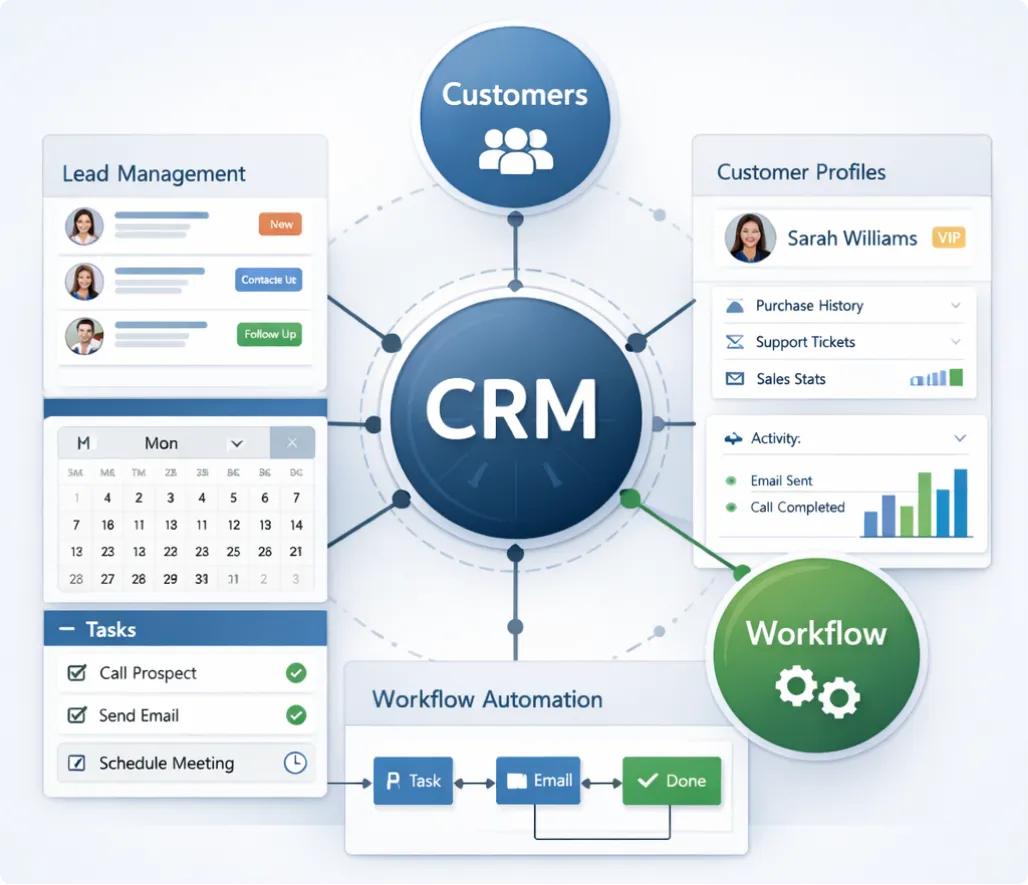 Centralized systems that help manage leads, customers, and workflows without added complexity.